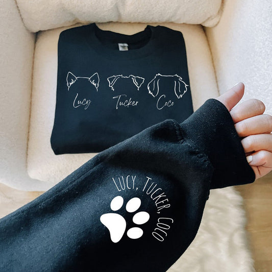 Embroidered Custom Dog Cat Ear with Name Sweatshirt Gift For Pet Owners, Pet Lovers